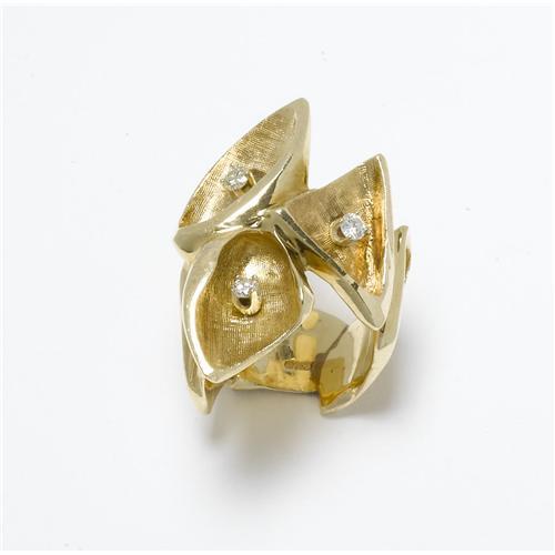 <B>DIAMOND, GOLD RING</B></I><BR><BR>The artistic ring design features full-cut diamonds weighing a total of approximately 0.30 carat, set in Florentine finished 14k yellow gold. Gross weight 21.00 grams.<BR><BR><BR><BR><b>Shipping:</b> Miscellaneous Collectibles, Smal (<a target="_blank" href="http://www.heritageauctions.com/common/shipping.php">view shipping information</a>) <BR><BR><B>Import