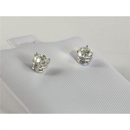 EARRINGS: Pair of classic 14k white gold and diamond stud earrings. The round cut diamonds measure approximately 1.04 ctw, have SI1 clarity and H to I color. Appraisal included.