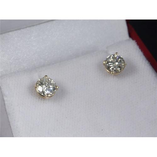 EARRINGS: A glittering pair of round brilliant diamond stud earrings set in 14k yellow gold. The diamonds measure approximately 2.05 ctw, have SI3 clarity and I to J color. Appraisal included.