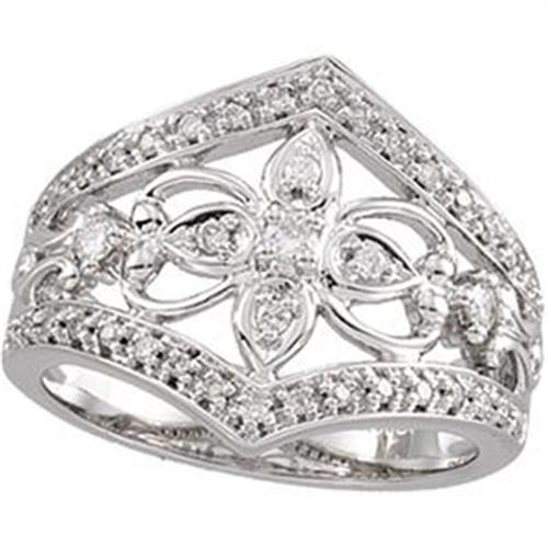 14k White Gold Diamond Wedding Band featuring an openwork design set with Diamonds. The Diamonds are all a sparkling 'SI' Clarity and white 'H' color, and the Diamond Total Weight= .33 CARATS! This Diamond Wedding Band is a size 6 and I can resize it for you.