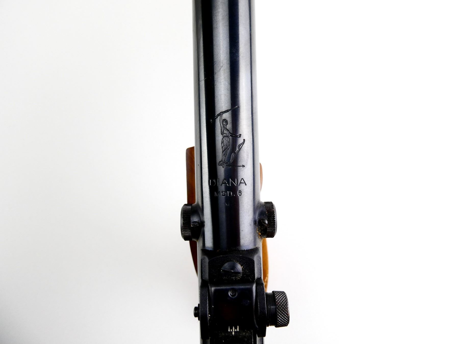 (1) .177 CAL PELLET, SPRING / AIR POWERED, SINGLE SHOT, BREAK ACTION, WOOD & METAL, MARKED: "DIANA MOD 6", "CAL. 4.5 / 177", SERIAL #: "24729", ETC., NO COCKING ISSUES, NOT FULLY TESTED. SEE PHOTOS.