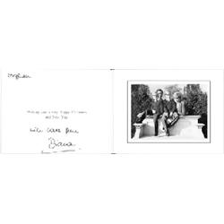 <b>1052. DIANA, PRINCESS OF WALES </b>(1961 - 1997) Princess of Wales and wife of Charles, Prince of Wales, the immensely-popular princess was tragically killed in a car accident while attempting to avoid reporters. Excellent, signed official 1990 Christmas card, 16" x 6" (opened), bearing small gold seals of Diana and Charles on outside, with printed Christmas greeting and color photo of Diana and Charles, and the young princes William and Harry, boldly inscribed on the greeting: "<i>Stephen, with love from Diana</i>". With transmittal envelope. Fine condition.<b> $1,000-1,500</b>
