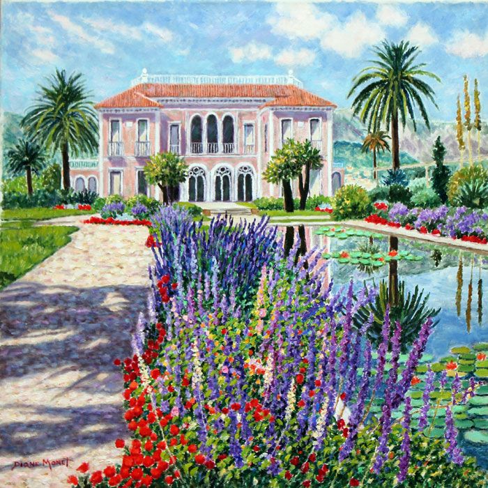 SIGNED ORIGINAL ACRYLIC ON CANVAS HAND SIGNED BY THE ARTIST, DIANE MONET- "JARDIN ROTHSCHILD". STRETCHED AND READY FOR FRAMING