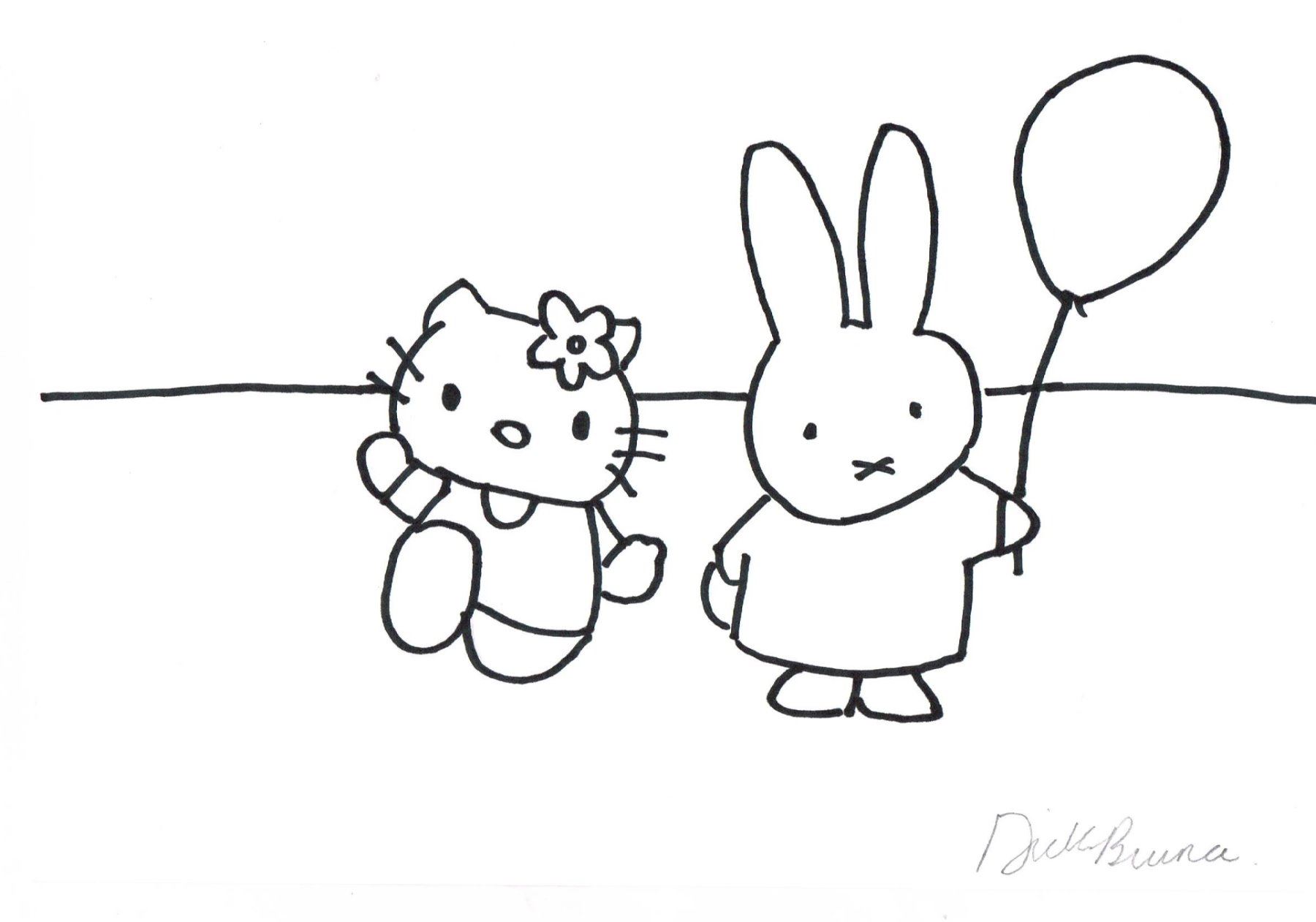 A drawing by Dick Bruna. He's best known as the creator of the iconic, minimalist figure of Nijntje, known in English as Miffy. Miffy first appeared in Dutch illustrated books for the very young, but now graces merchandise for every age group the world over, as well as greeting visitors to her home country from the walls of Schiphol airport in Amsterdam. Size: 11.75x8 inches.
