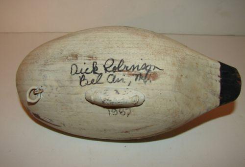 DICK ROBINSON BEL AIR, MARYLAND HALF-SIZE GOLDENEYE DECOY. Signed on bottom "Dick Robinson/Bel Air, Md./1987". 8.25" L
