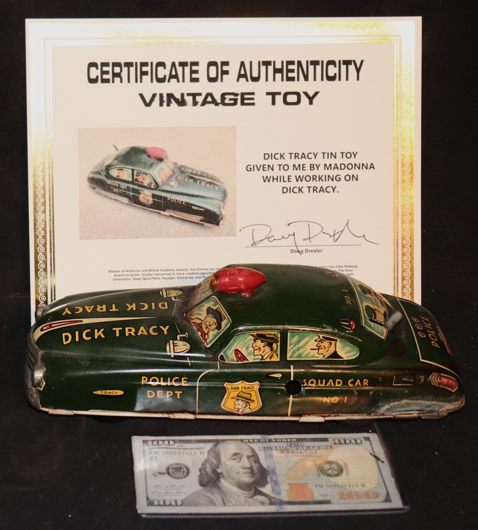 DICK TRACY 1950's METAL TOY CAR GIFT FROM MADONA TO HER MAKE UP ARTIST DURIUNG FILMING!