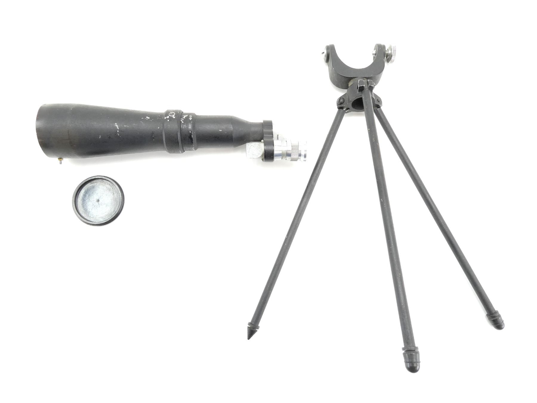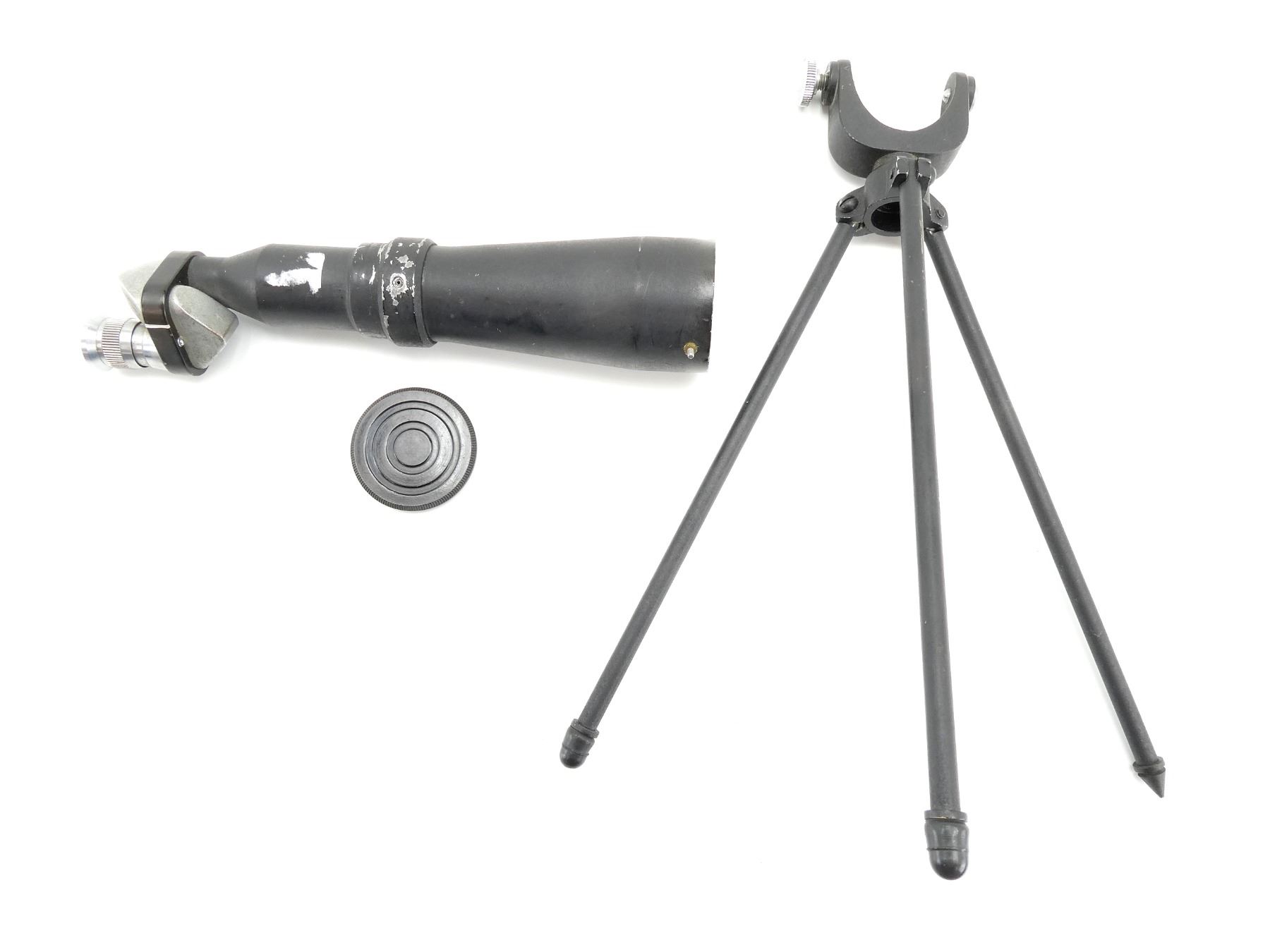 LOT INCLUDES; (1) SPOTTING SCOPE, CLEAR OPTICS, WORKING MAGNIFICATION RING, SERIAL NO. 96025, VARIOUS MARKINGS, LENS CAP & (1) MATCHING METAL TRIPOD, NO VISIBLE MARKINGS, OAL APPROX. 11". SEE PHOTOS.