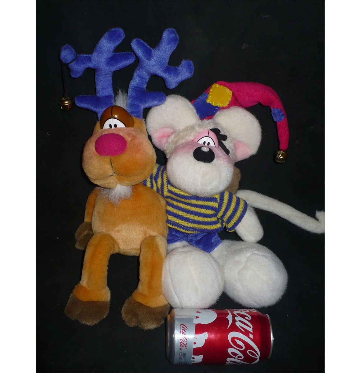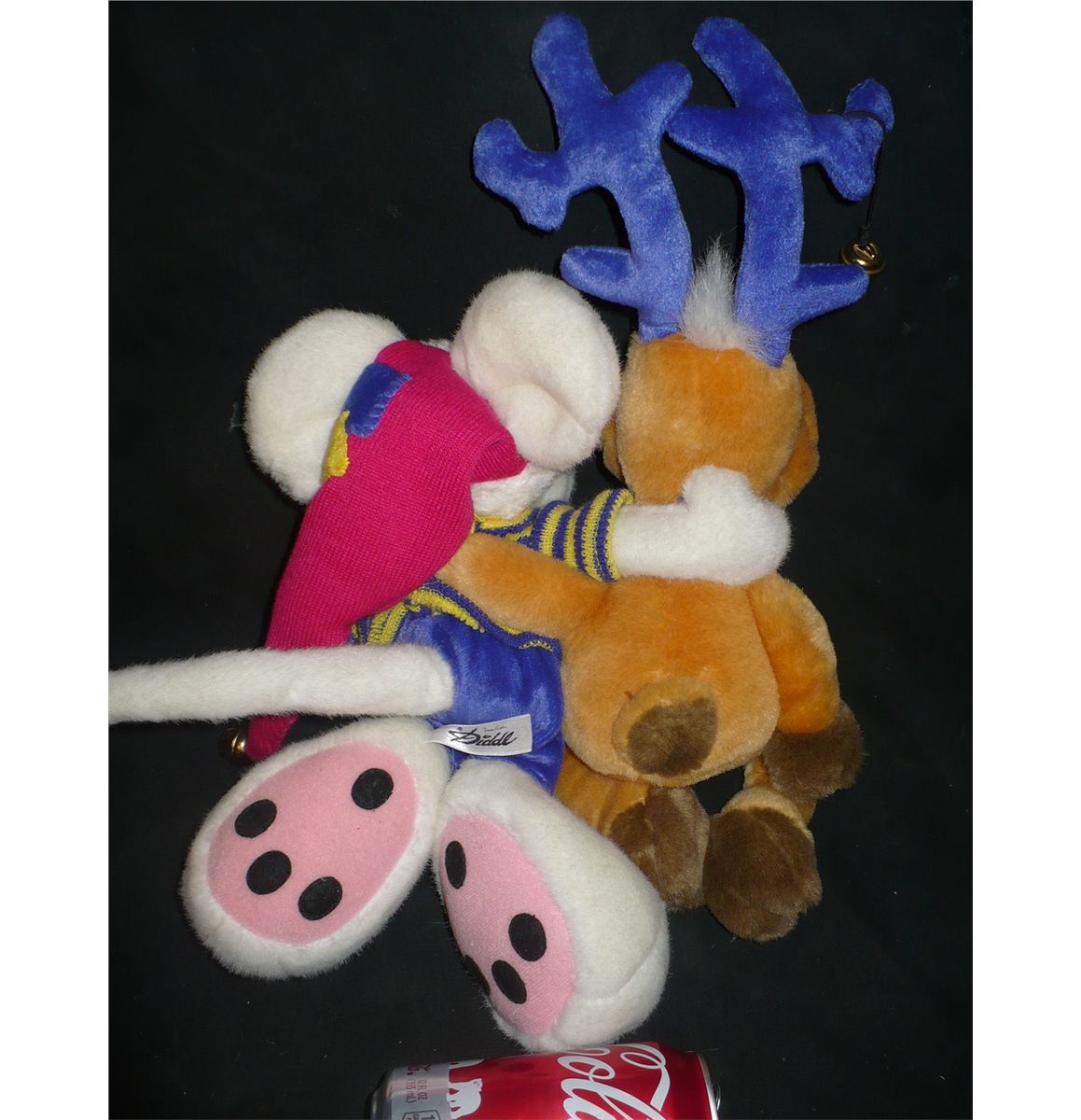 This is a very cute Diddl Mouse and Reindeer stuffed animal with two jingle bells by Thomas Goletz. Diddl is wearing a sweater, pants and a Christmas hat. Its in great like New condition. Makes the perfect gift for your loved one.