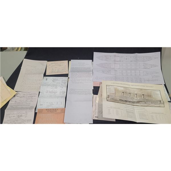 SOUVENIOR/ COPPIES OF OFFICIAL DOCUMENTS RELATING TO THE TITANIC - BOARDING PASSES, INSPECTION CARDS, BLUEPRINTS