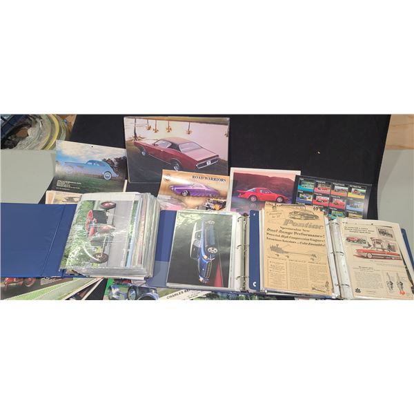 LARGE LOT OF VINTAGE CAR CALLANDERS AND THREE LARGE BINDERS OF FUL OF POSTERS