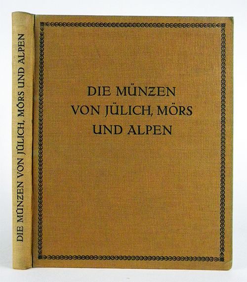 Noss, Alfred. DIE MÜNZEN VON JÜLICH, MÖRS UND ALPEN. München, 1927. 4to, original brown cloth, lettered in dark brown. xiv, 164, (2) pages; map; genealogical table; 12 fine plates of coins. Near fine. The standard work. Scarce. Clain-Stefanelli 9404*.