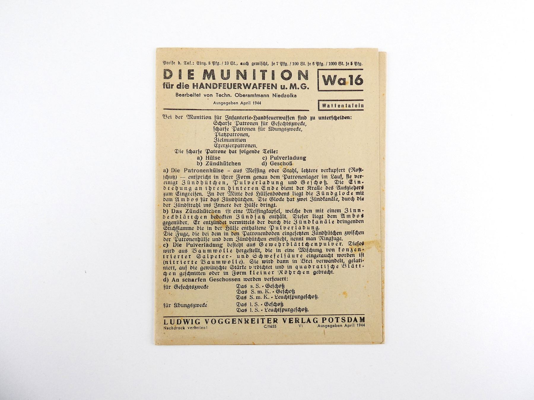 "DIE POSTDAMER TAFELN" AMMUNITION GUIDE