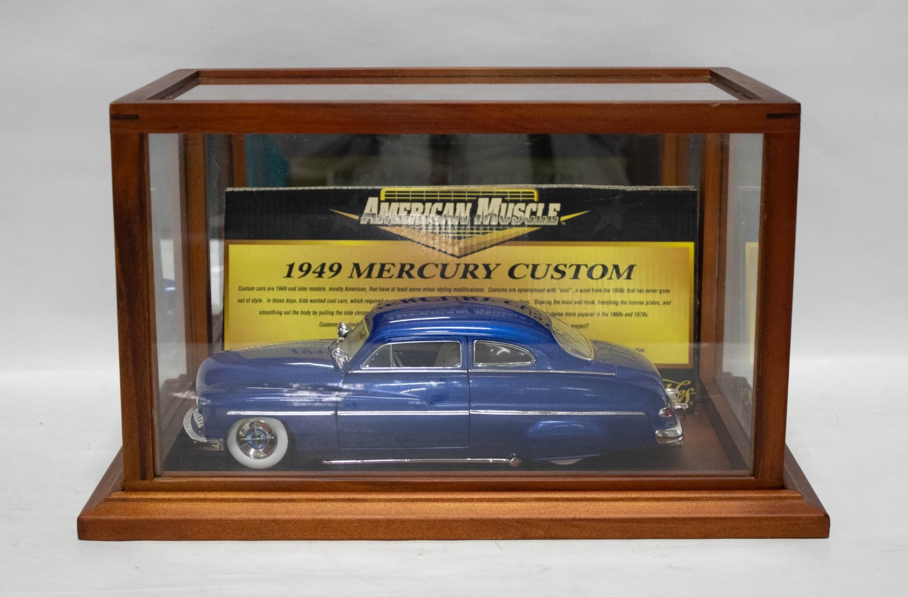 MODEL CAR IN GLASS/WOOD DISPLAY CASE