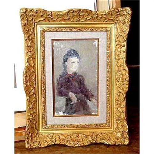 DIETZ EDZARD (German, 1893-1963) Portrait of a little Girl. Oil on canvas laid on board, signed lower right, housed in a wonderful gilt wood frame, with large linen liner. Affixed to the verso is the original Dietz Edzard Atelier label, as well as 2 Sotheby?s labels, and one Galerie Dominion label. Edzard is best known for his detailed paintings of genre, portraits, Venice, cafes, coasts, still life?s, flowers, dancers, and nudes. Measuring 5.75 x 9.25 inches (painting), 11 x 15 inches (frame). CONDITION: Very good to excellent.