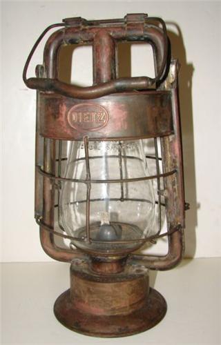 DIETZ KING FIRE DEPARTMENT LANTERN WITH HANDLE. Clear glass globe. Replaced burner knob. 14" H