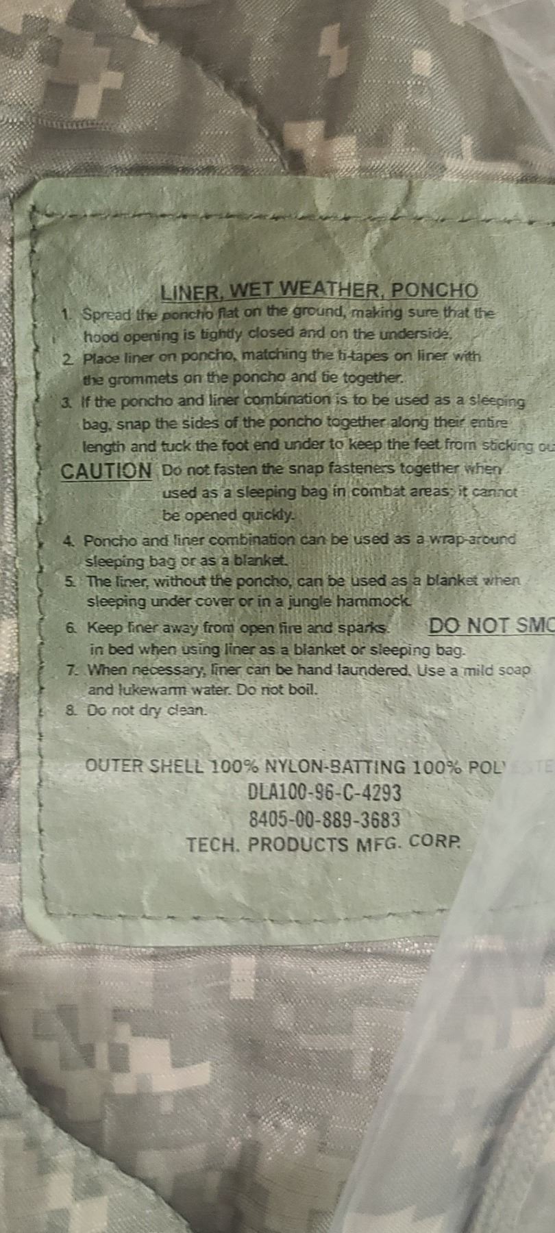 DIGITAL ARMY COMBAT CAMOUFLAGE LINER - WET WEATHER PONCHO FOR SLEEPING BAG