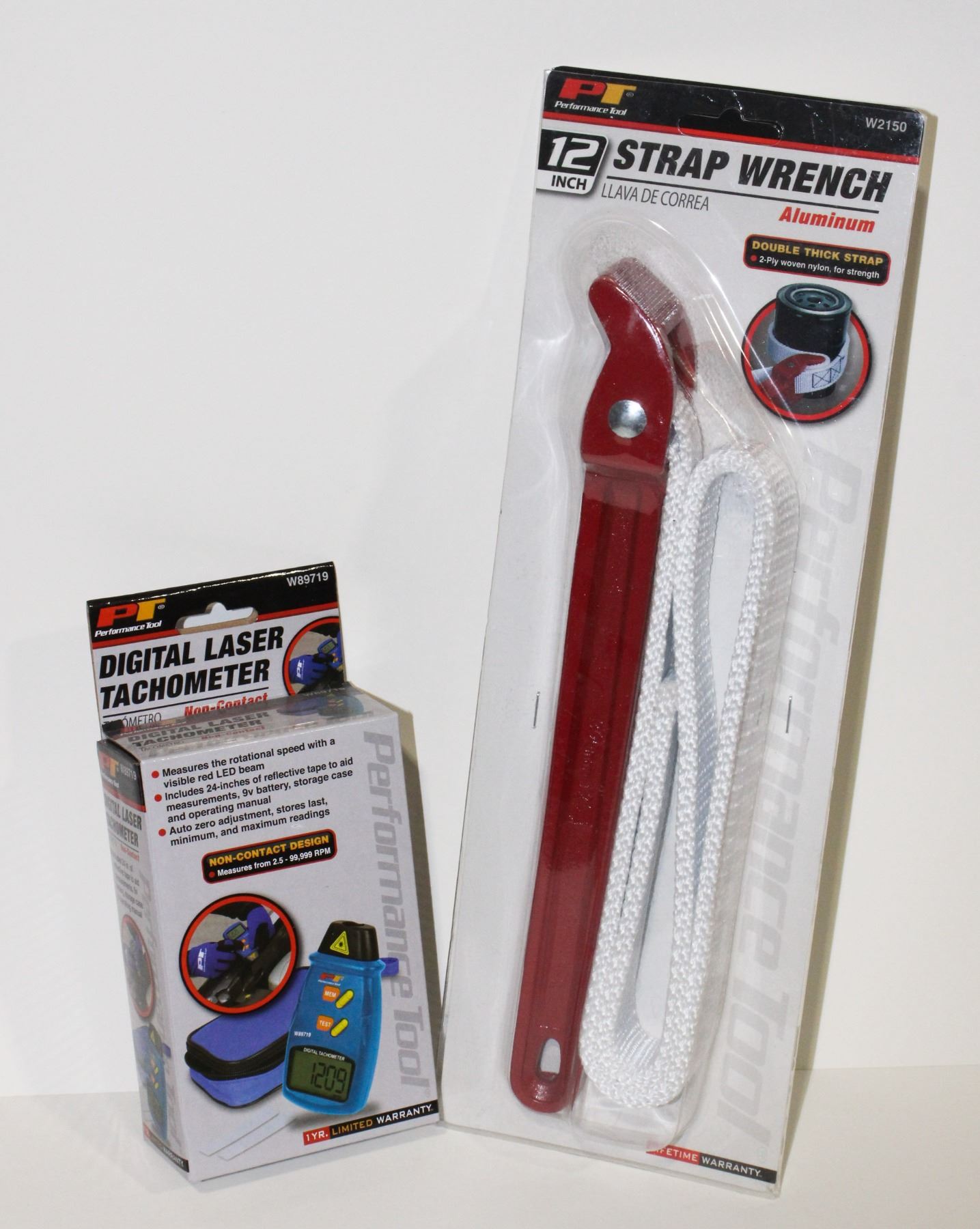 DIGITAL LASER TACHOMETER, AND 12" STRAP WRENCH