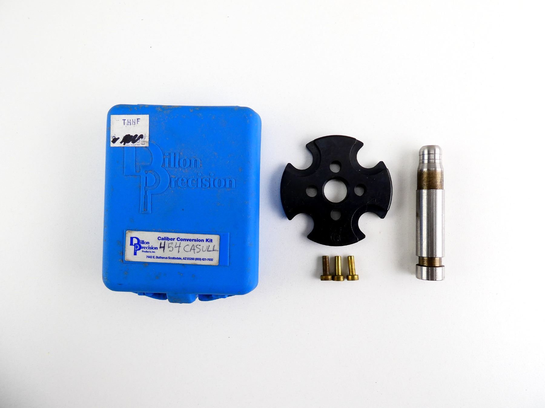 LOT INCLUDES; (1) .454 CASULL CALIBER CONVERSION KIT, KIT MAY NOT BE COMPLETE. SEE PHOTOS.