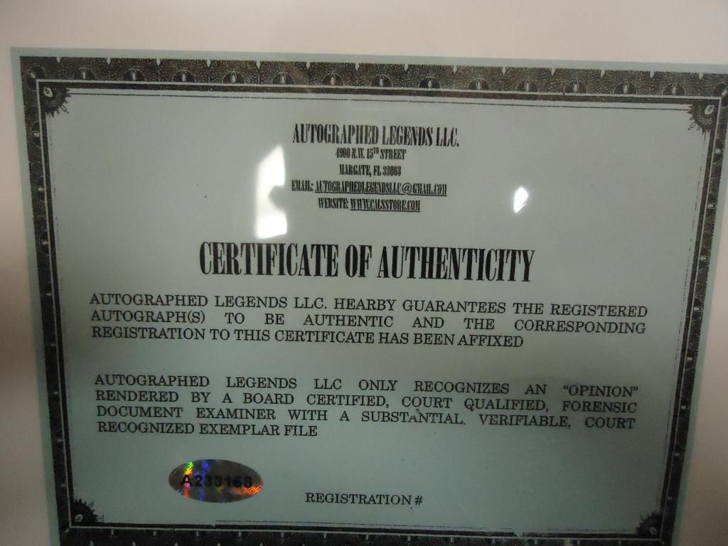 BEING SOLD AS IS, PLEASE USE YOUR OWN JUDGEMENT. CONTACT 1-954-974-1104 AT AUTOGRAPHED LEGENDS WITH ANY QUESTIONS ABOUT THEM, THIS IS THE PERSON WHO AUTHENTICATED THEM. WE ARE NOT AUTOGRAPH EXPERTS AND CANNOT GUARANTEE THEM OURSELVES.