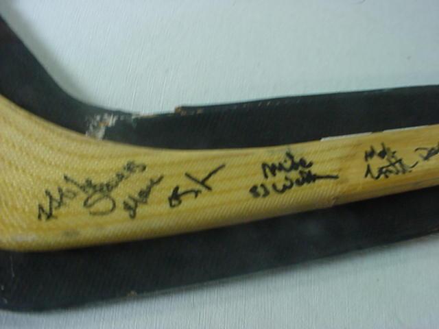 DIMAIO Signed and Goalie Game Used Hockey Sticks: New York Islanders Players on Stanley Cup Championship Teams of 1980-1983. Marked "DIMAIO" and is Signed by 17 Islander's Players. Goalie Stick is Unmarked. (100-200)