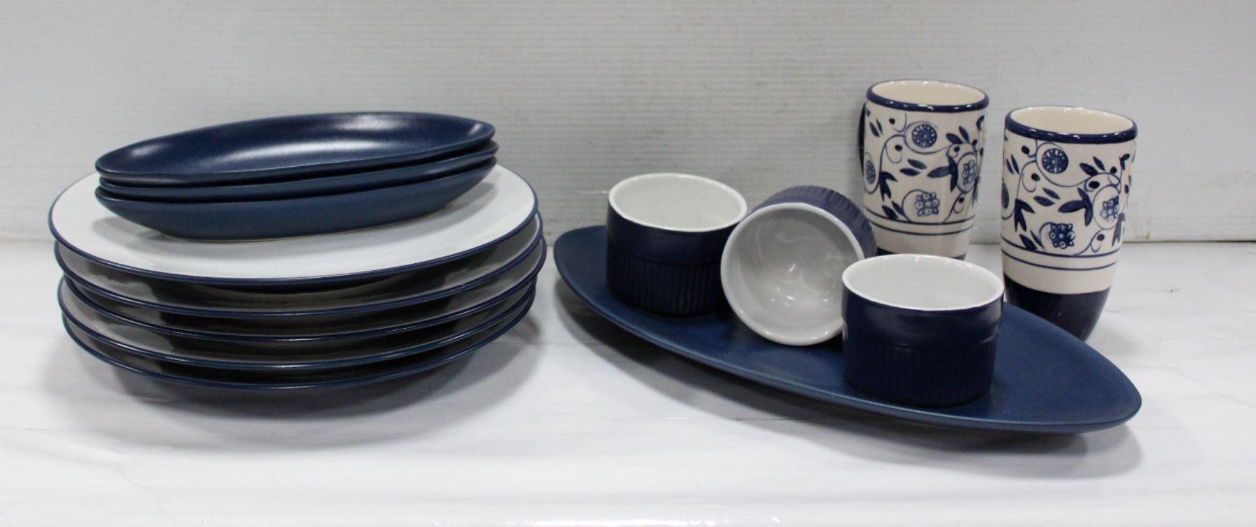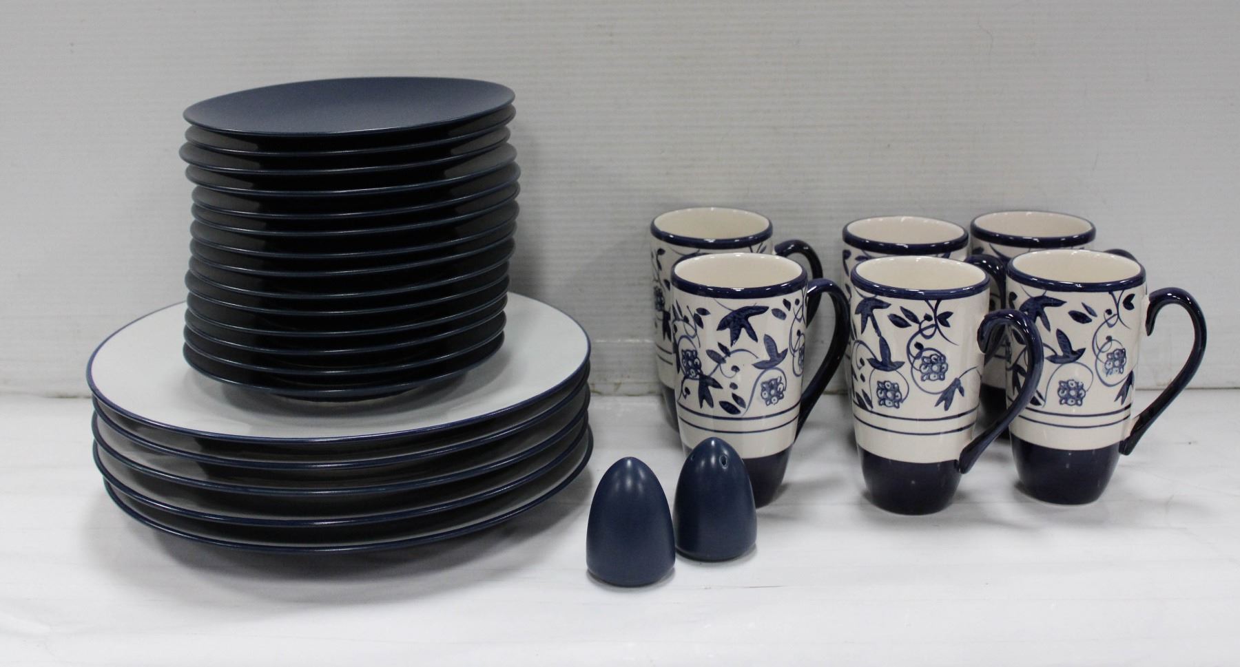 DINNERWARE STUDIO NOVA NAVY WHITE SET 37 PC
