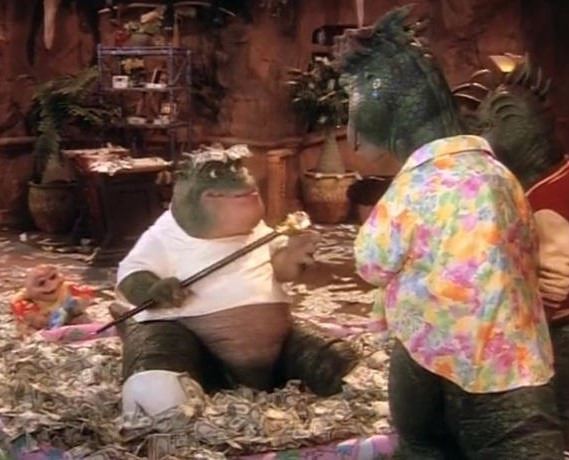 DINOSAURS TV SHOW BANK OF PANGAEA BAG FULL OF DINO DOLLARS SCREEN MATCHED !