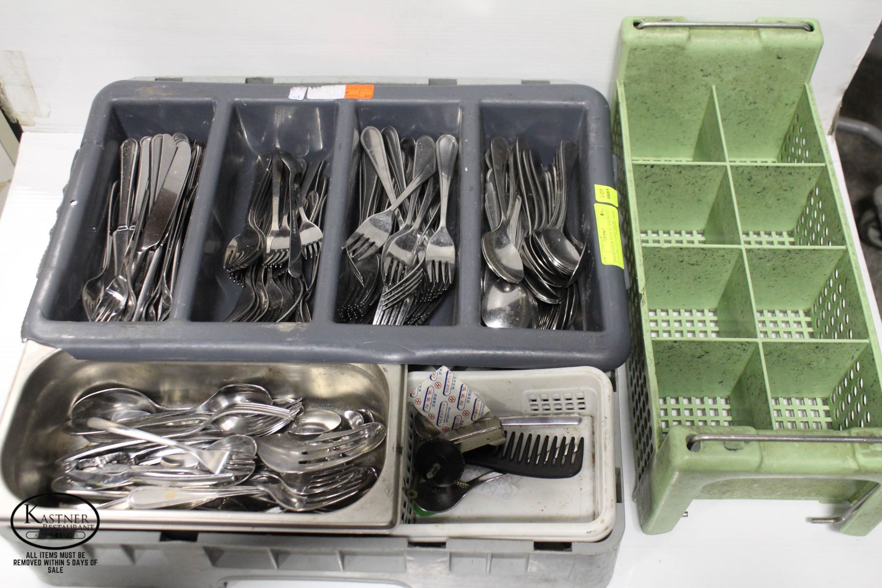 DISHWASHER TRAY W/ ASSORTED CUTLERY, CUTLERY TRAYS