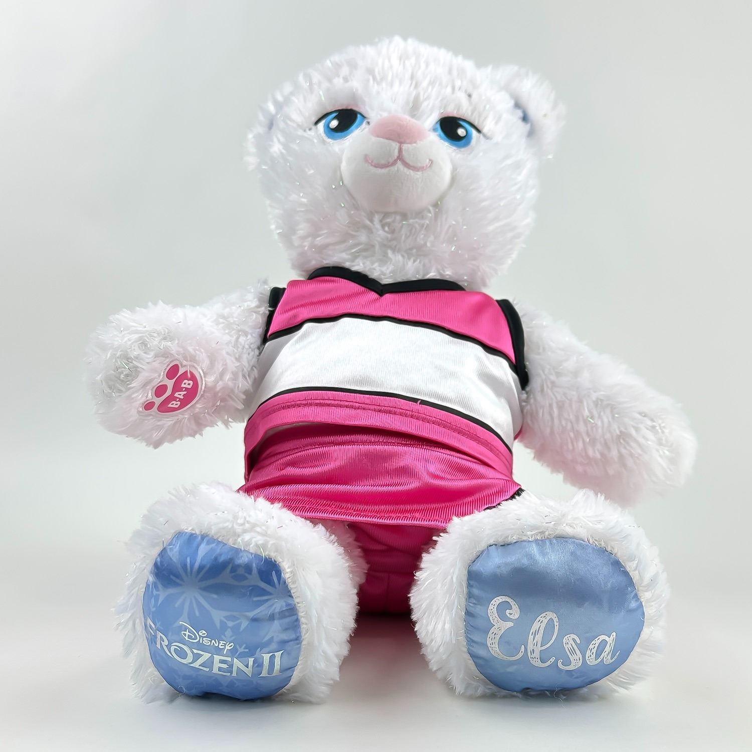 #8126 - PLUSH TOY BUILD A BEAR STUFFY - DISNEY FROZEN II ELSA CHEER BEAR. COLLECTIBLE WALT DISNEY FROZEN II MOVIE PLUSH ELSA BEAR TOY ANIMAL - BY BUILD-A-BEAR. MEASURES 17” (43 CM) LONG