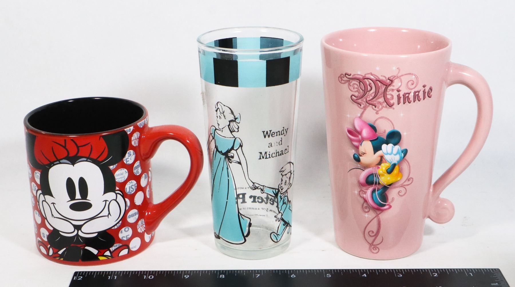 DISNEY GLASSWARE LOT, TWO MODERN, ONE VINTAGE