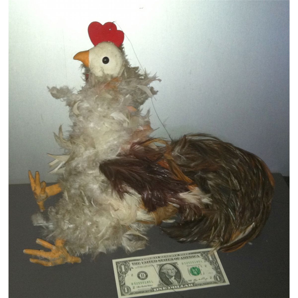 Offered here is a very cool and realistic looking rooster marionette puppet which was used in DISNEYLAND or DISNEY ON PARADE. It is covered in real chicken feathers and has strings coming out of it. Great for re-use in your Puppet Show or Display.