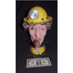 Offered here is a OOAK vintage miner or construction worker with cigar and Circus clown dual face animatronic head. Incredible paint job and detail. Makes a very cool display. Has a mechanical mount underneath so it can spin.