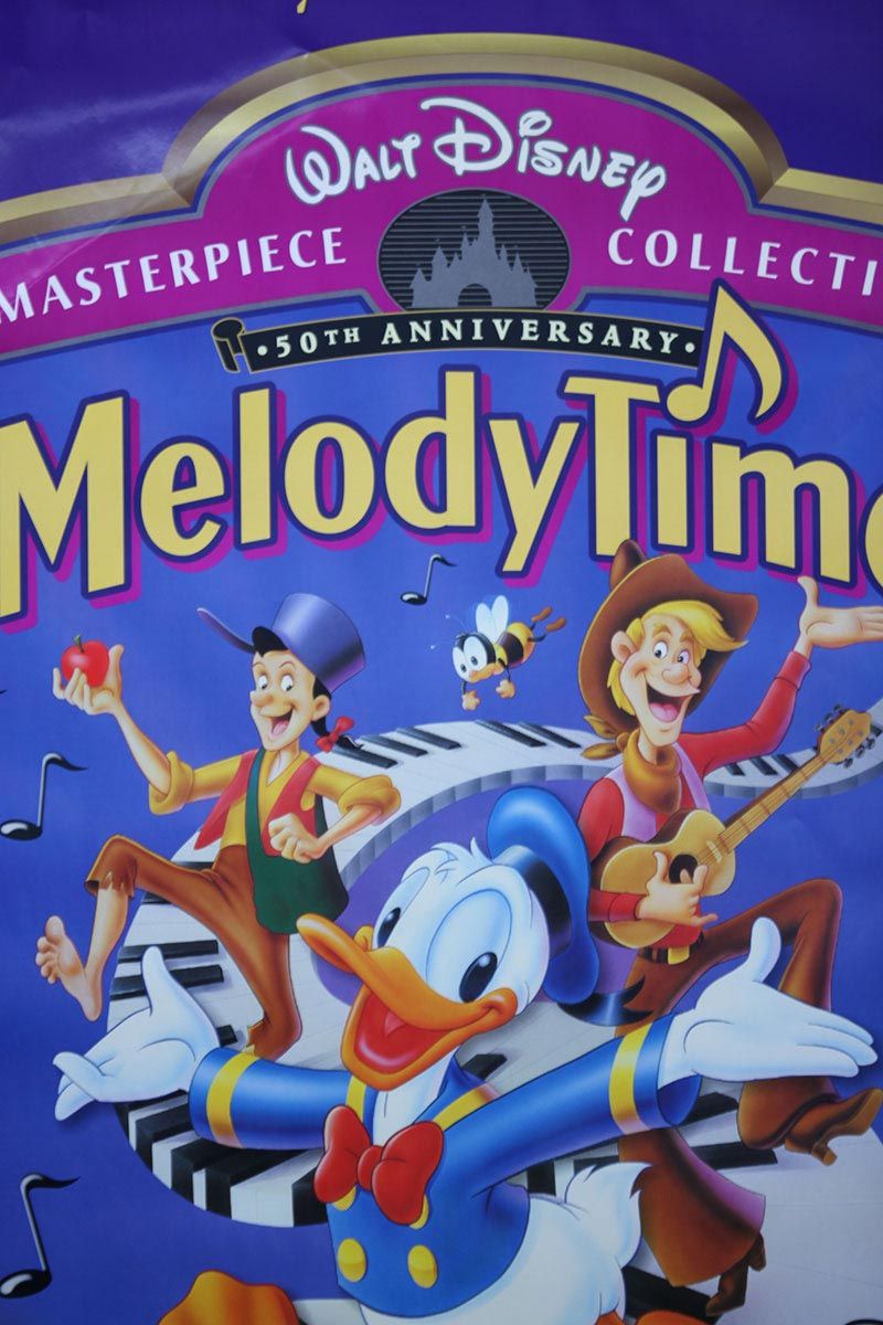 DISNEY POSTER **|**|** 26X40 INCHES; UNFRAMED; This original poster is for the 50th Anniversary of Melody Time. Melody Time is a 1948 animated feature produced by Walt Disney and released to theatres by RKO Radio Pictures on May 27, 1948. Made up of several sequences set to popular music and folk music, the film is, like Make Mine Music before it, the popular music version of Fantasia (an ambitious film that proved to be a commercial disappointment upon its original theatrical release). Melody Time, while not meeting the artistic accomplishments of Fantasia, was a mildly successful film in its own right. It is the tenth animated feature in the Walt Disney Animated Classics series and the fifth package film following Saludos Amigos, The Three Caballeros, Make Mine Music, and Fun and Fancy Free. ; MSRP: $850