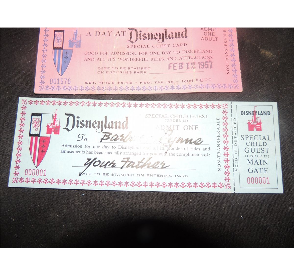 This is a #000001 DISNEYLAND ticket from 1957. Authenticated by DISNEY archives, but they would not give a LOA.