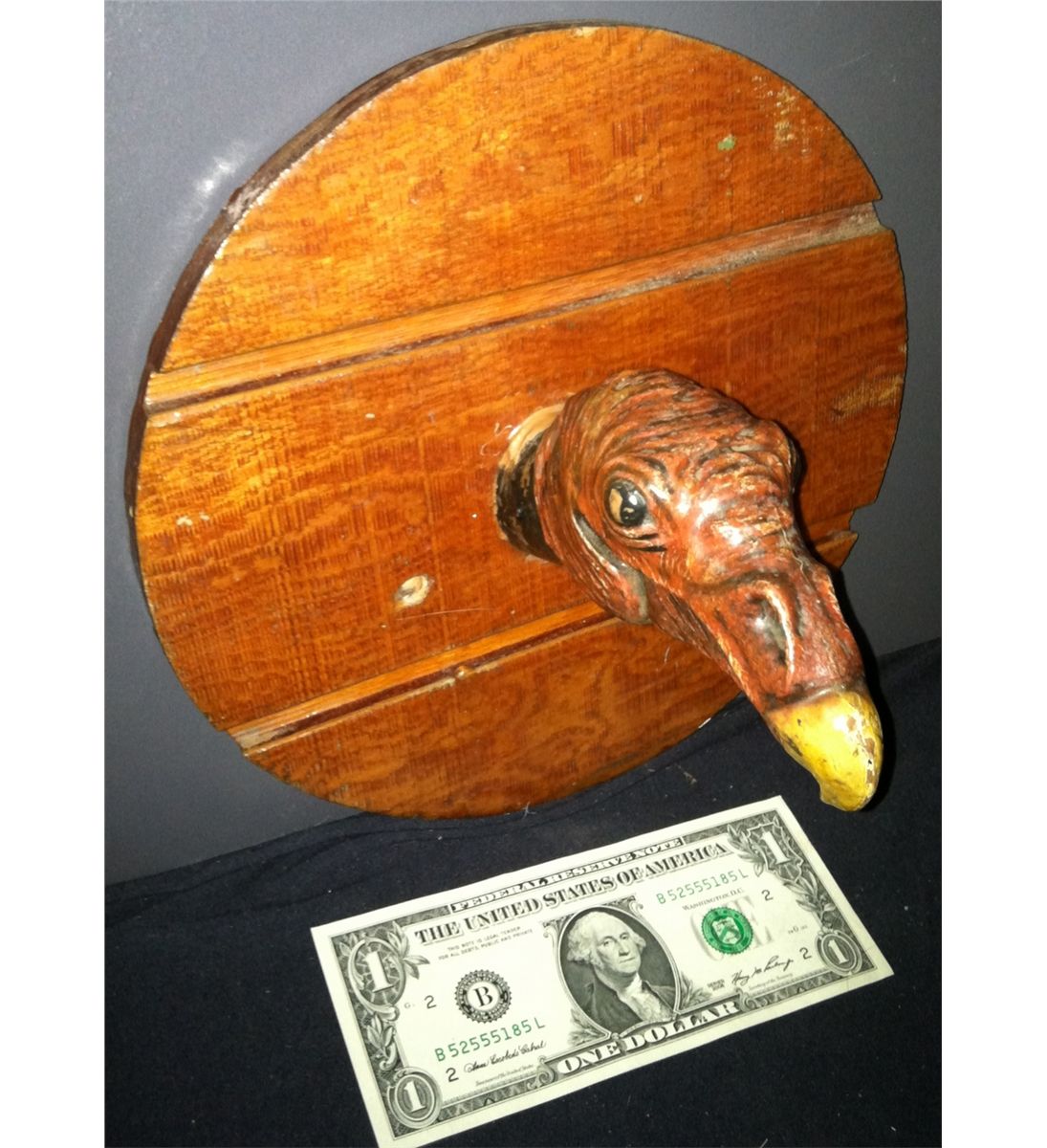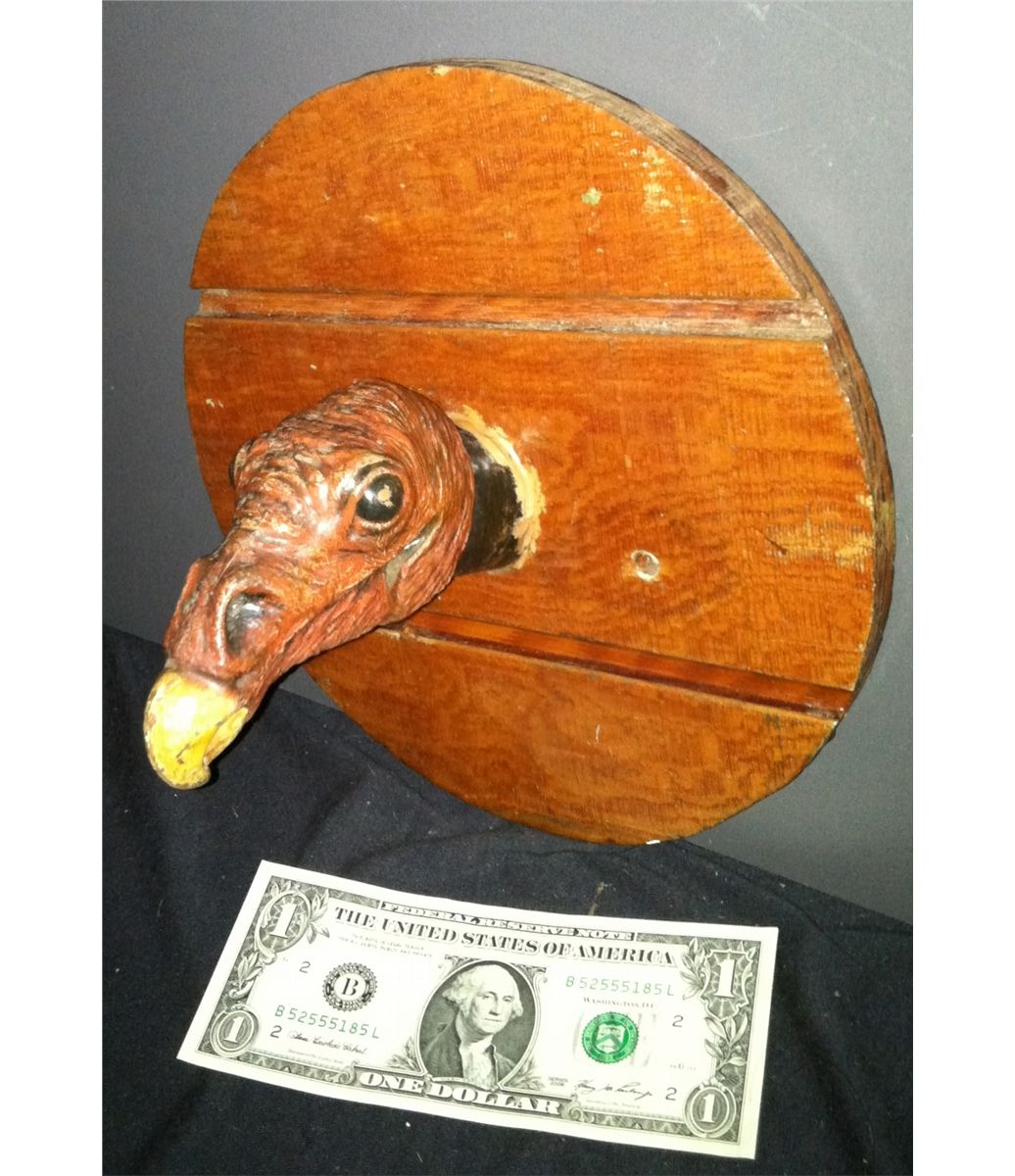 Offered here is a unique mounted trophy Vulture head display on a wood plaque. The head is made of fiberglass resin.