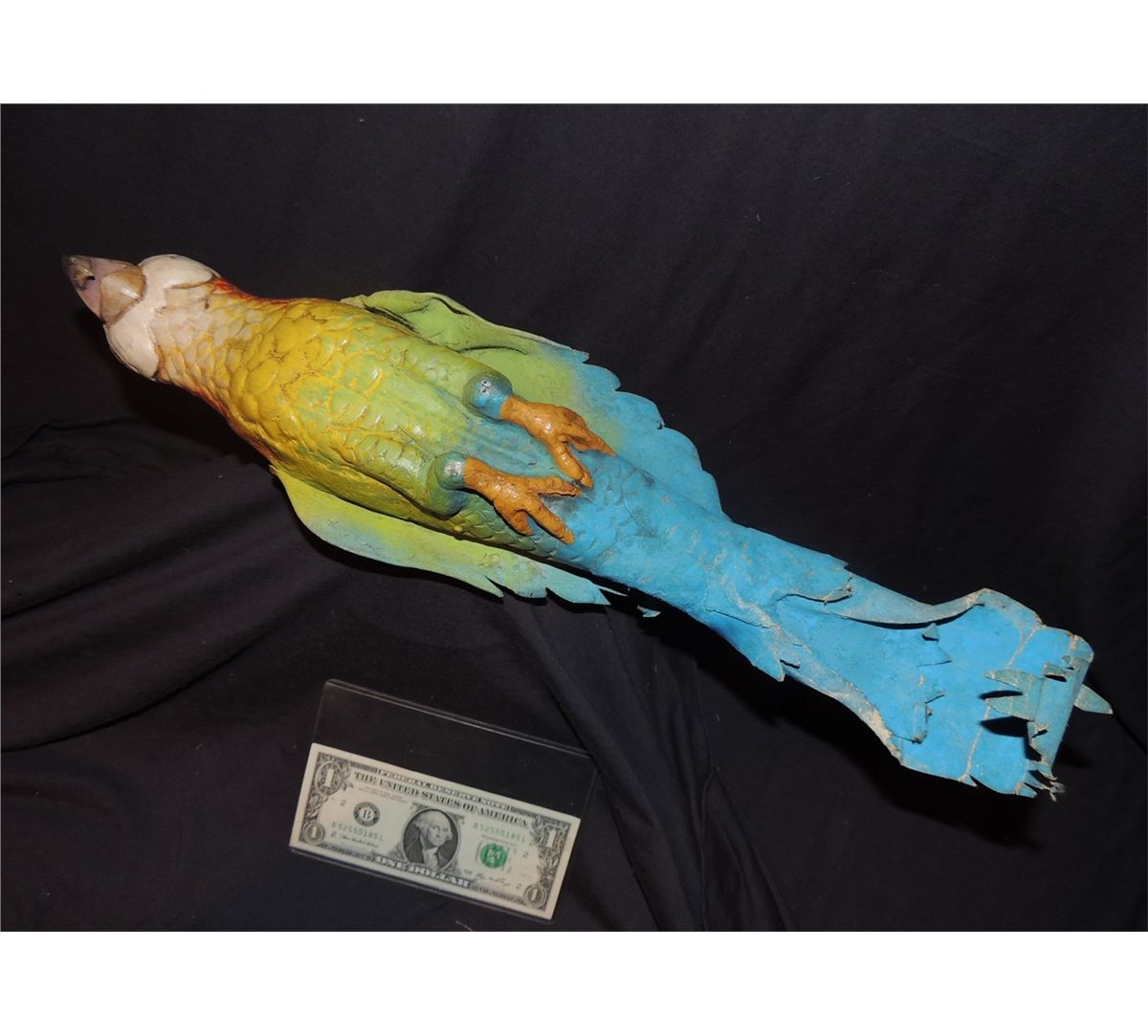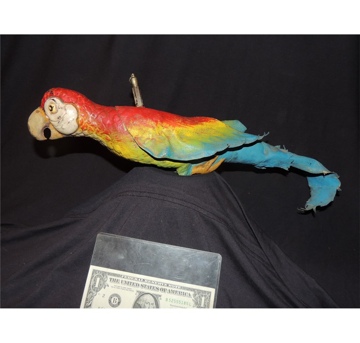 Offered here is a very cool rainbow colored animatronic parrot puppet which once flew around the opening of the Pirates of the Caribbean ride on the desert set before the ride started, and or in THE BLUE BAYOU restaurant back in the late 60's, early 70's. THE BLUE BAYOU is the waterside restaurant set inside Disneyland's Pirates of the Caribbean ride. Similar puppets may have also been used in THE TIKI ROOM as well.