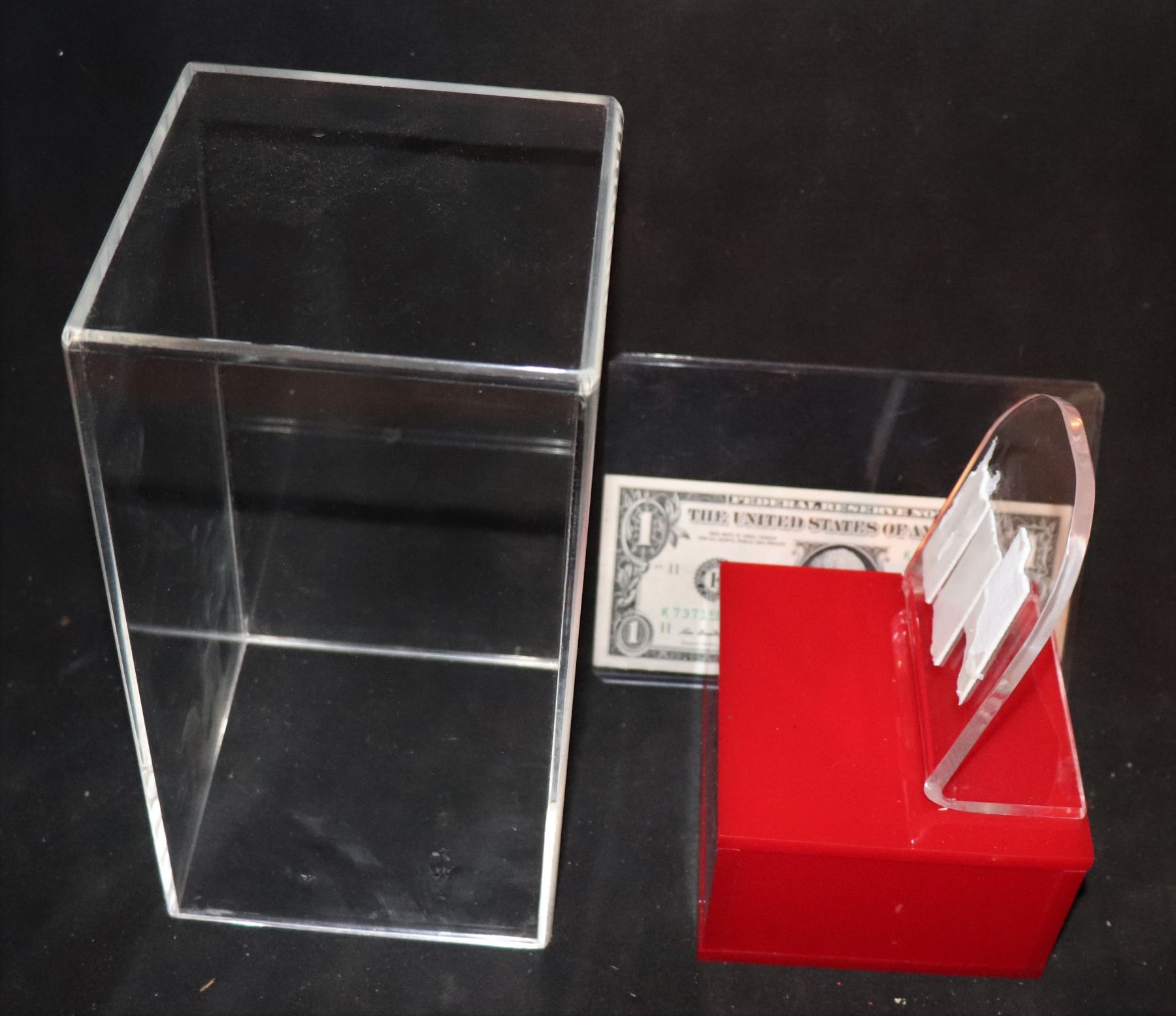 DISPLAY CASE ACRYLIC WITH INNER STAND AND RED BASE