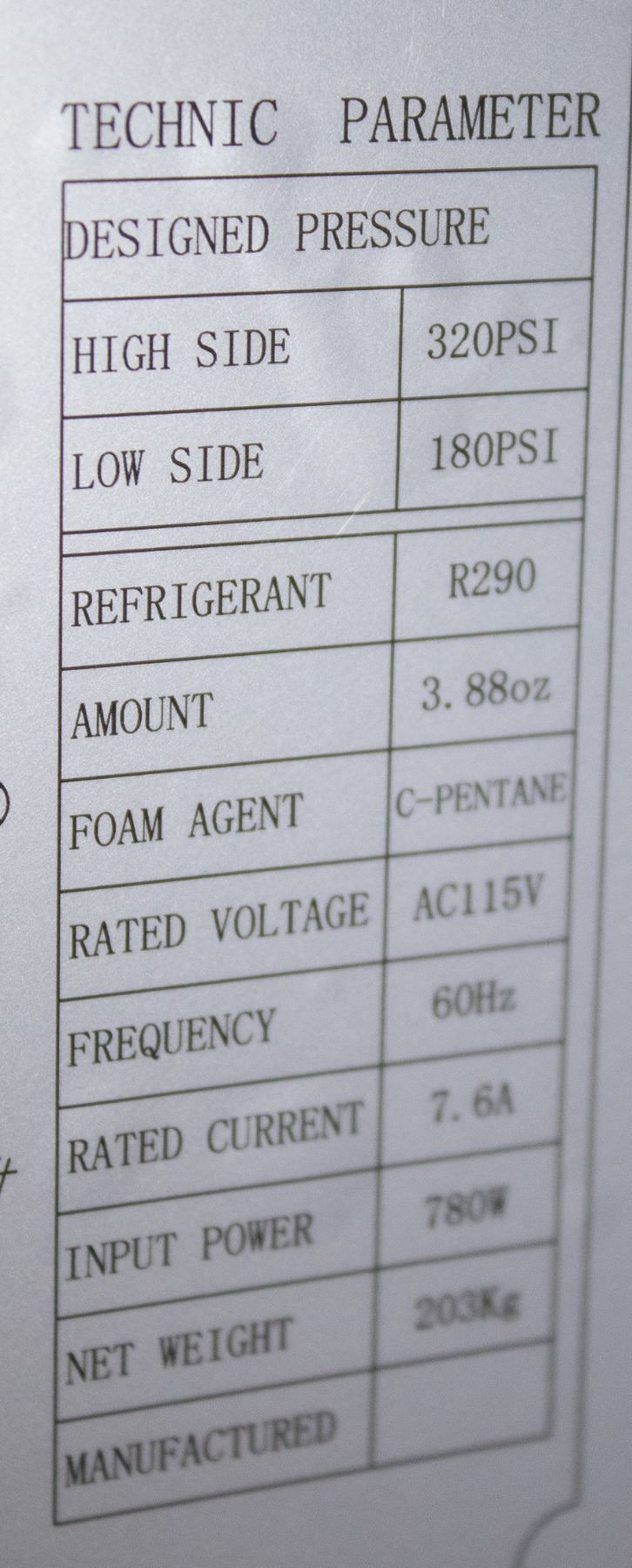 MODEL # ND-CFD-2FF-E-HC, AC 115 VOLTS, 60 HZ, 7.6 AMPS, 780 WATTS, 203KG, 54" X 32" X 83" ** DISPLAY MODELS MAY HAVE SCRATCHES MINOR DENTS AND DINGS **