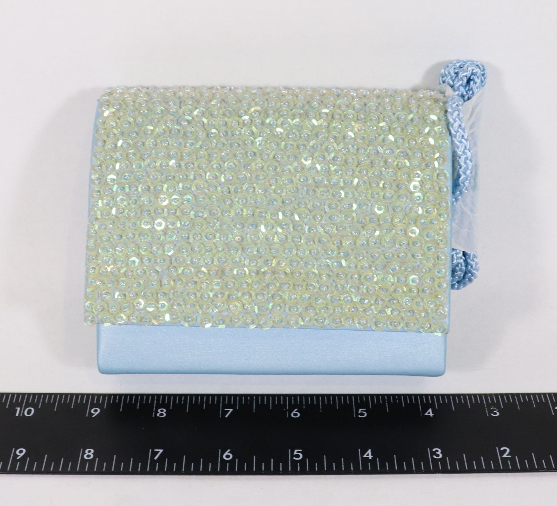 HAS FABRIC ATTACHED SHOULDER STRAP. SOME DISCOLORATION