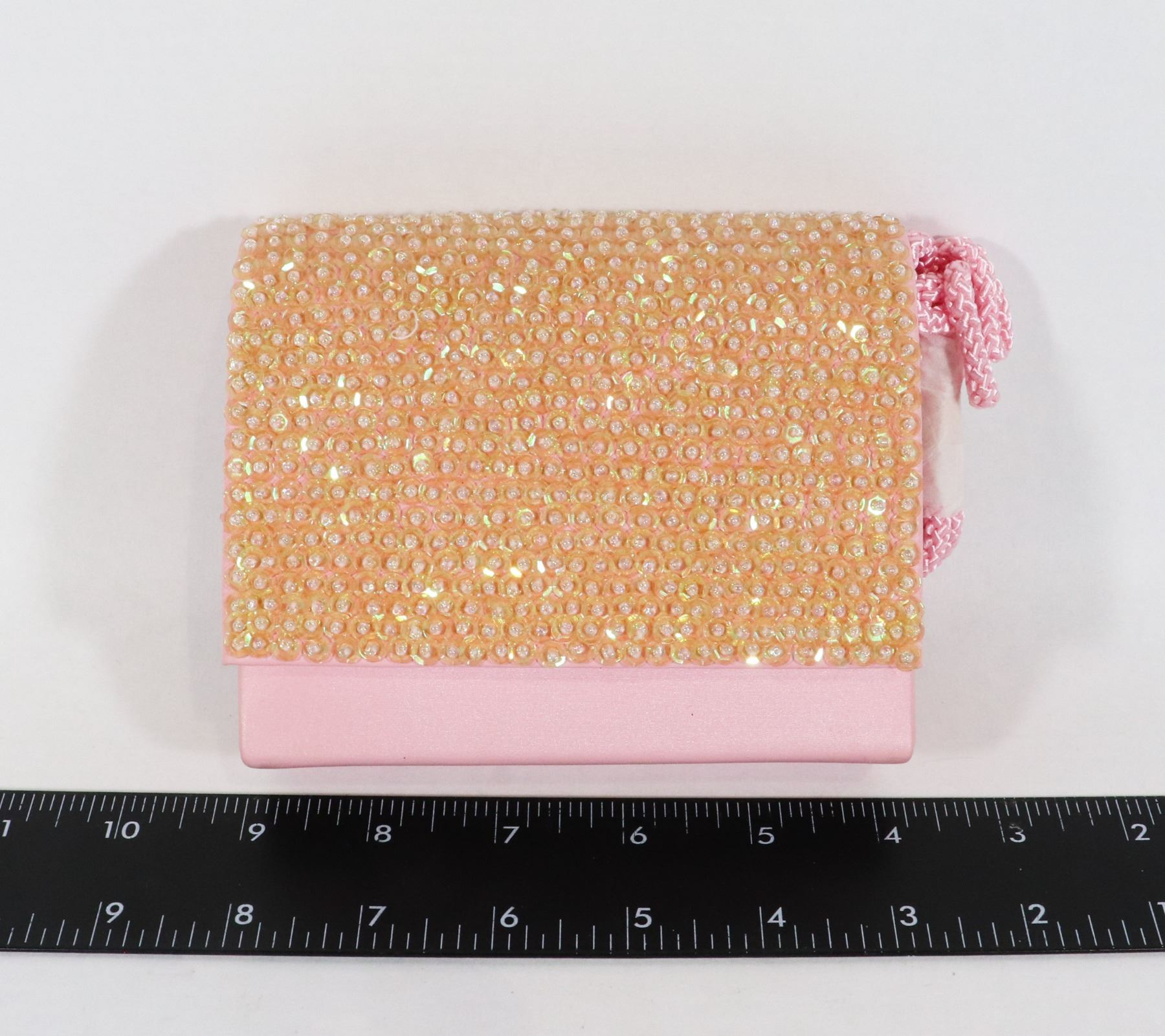 BAG HAS FABRIC ATTACHED SHOULDER STRAP. HAS SOME DISCOLORATION