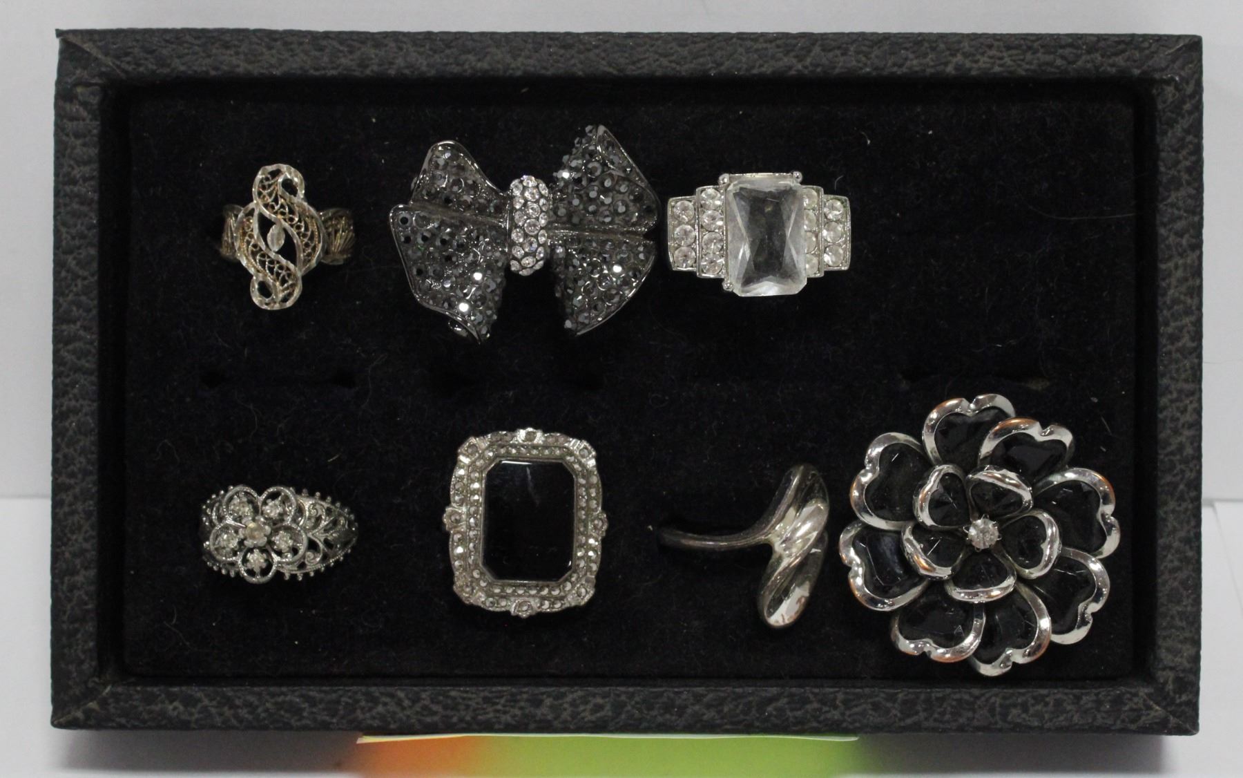 DISPLAY OF 7 RINGS ASSORTED SIZES