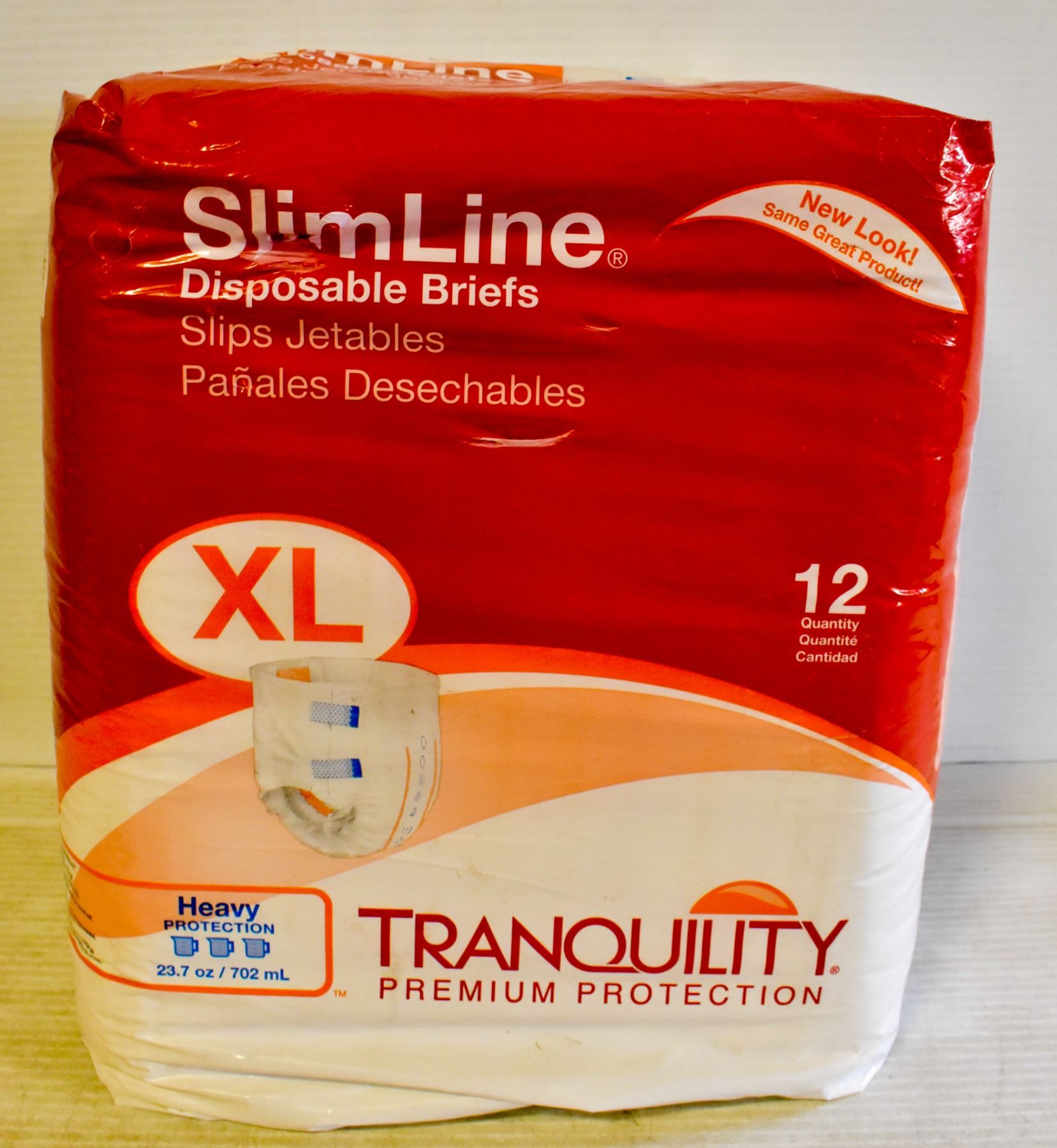 SLIMLINE DISPOSABLE BRIEFS. SIZE IS XL. NEW AND UNOPENED PACKAGE