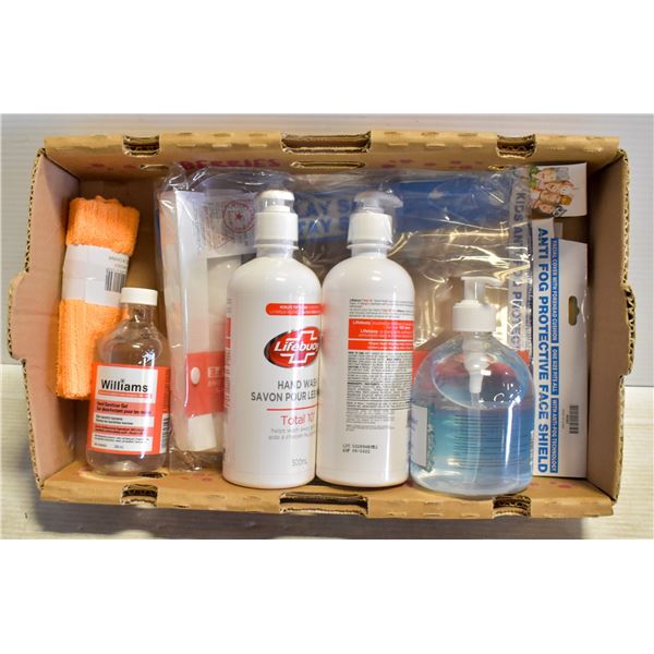 FLAT OF ASSORTED HAND SANITIZERS / FACESHIELDS