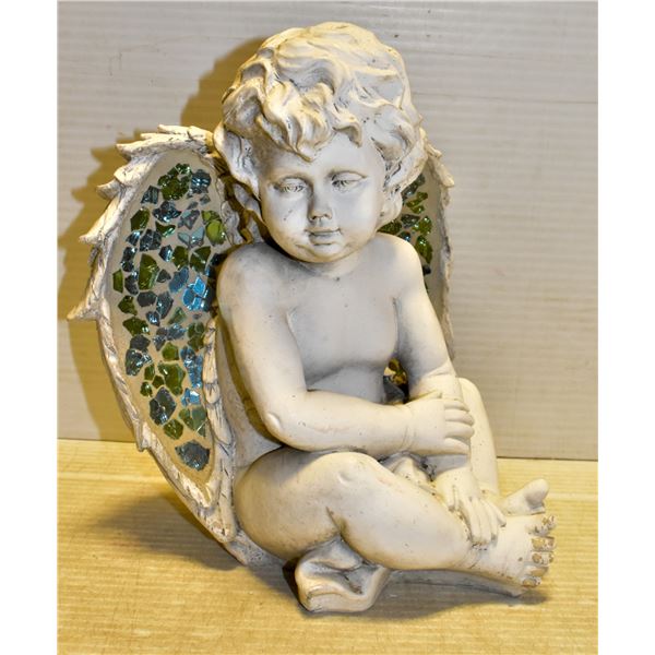 LARGE GARDEN ANGEL, REFLECTING GLASS ON WINGS