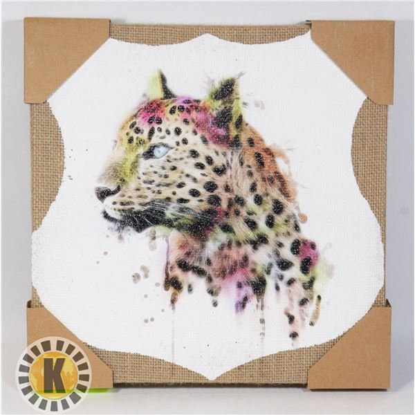 NEW LEOPARD BURLAP CANVAS ARTWORK