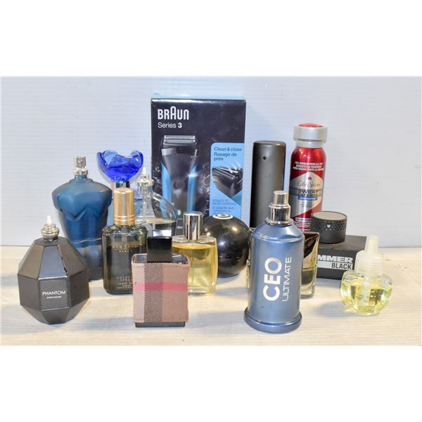 BOX ASST COLOGNE / PERFUME W/ NEW BRAUN RAZOR