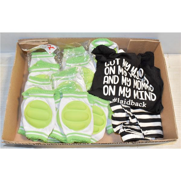 TRAY OF BABY KNEE PADS AND TODDLER CLOTHING