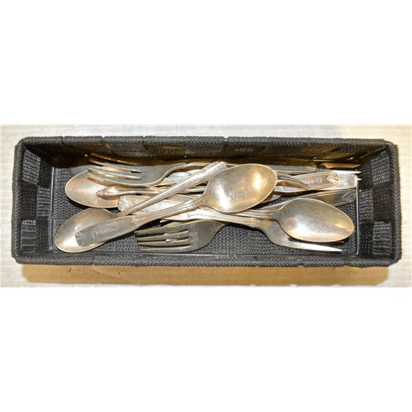 BASKET OF SILVER PLATED FLATWARE