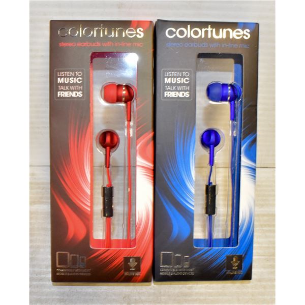 PAIR OF NEW EAR BUD WITH MICROPHONE COLOR TUNES