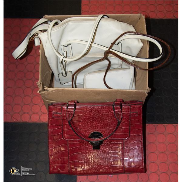 WHITE PURSE, WHITE WALLET, RED FAUX LEATHER PURSE, BROWN FAUX LEATHER MINI PURSE/WALLET