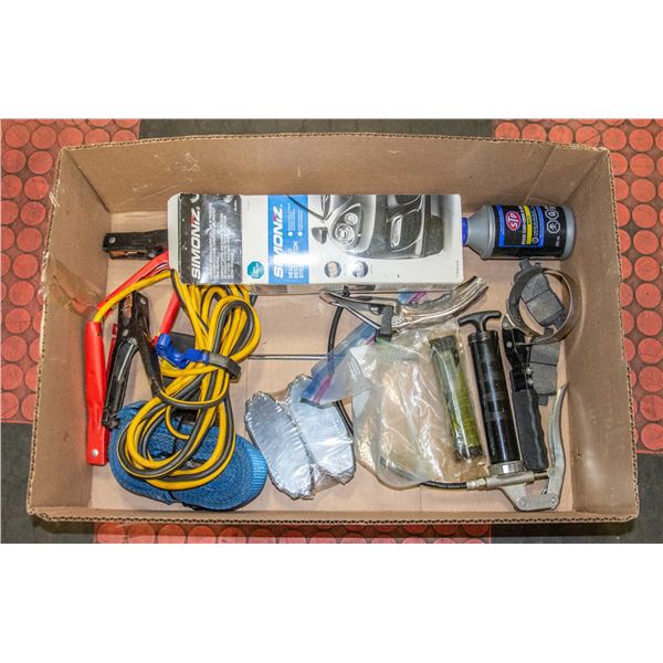 ACCESSORIES INCL. SIMONIZ HEADLIGHT RESTORATION SYSTEM, BOOSTER CABLES, NEW STP DOT-3 BRAKE FLUID, GREASE GUN, NEW DISC BRAKE PADS, TOW STRAP, FILT
